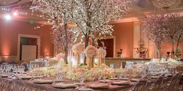 Combined Blossom trees with Low Flower arrangements for that Extra Glamorous feel to your event