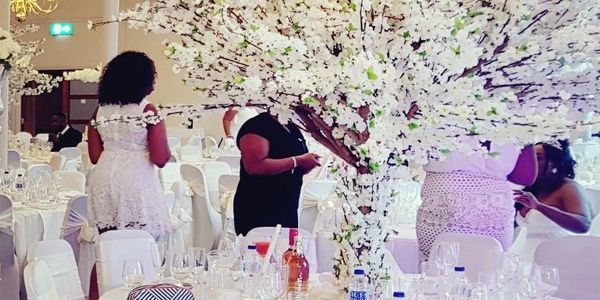 Extra Wide and Thick White Blossom Trees these trees are one of a kind many hire have blossom trees but ours are extra thick and full they give the extra wow factor to any event. Can be used as Floor standing piece or on Tables