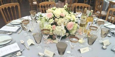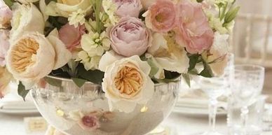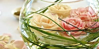 Pastel Pink and Ivory Floating Fresh Roses in Large Glass Fish Bowls