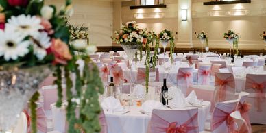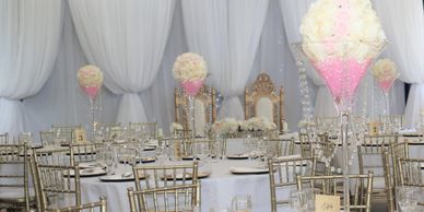 Tall Glass Martini Vases with Pink Crystals can be changed to any Colour to suit wedding Theme