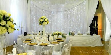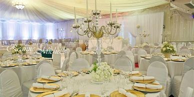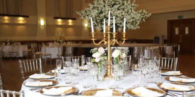 Gold Candelabras with Ivory candles matched with our Gold Charger Plates