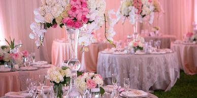 Glass Cylinder Vases with Pastel Pink & White Fresh Flower arrangements