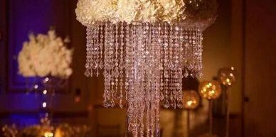 Glass cylinder Vases with Fresh Flowers and Hanging Crystals